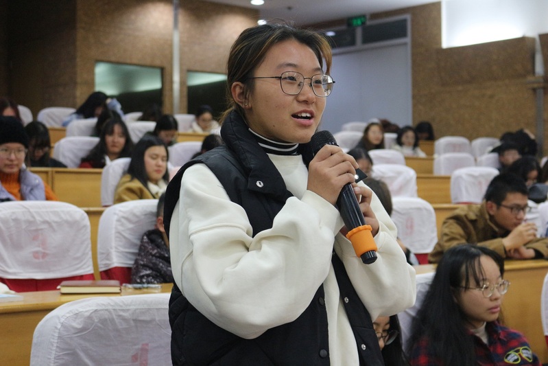 许友根教授以盐城为样本,从盐城经济、盐城教育、盐城交通三个方面切入,讲述了新中国成立以来盐城的快速发展。通过盐城样本进而剖析新中国成立以来取得的伟大成绩,得出中国共产党领导是中国特色社会主义最本质的特征。教育广大青年学生要珍惜现在的美好时代,努力学习科学文化知识,将个人理想融入社会理想,将个人梦与中国梦同频共振。讲座最后,许友根教授与现场同学进行了交流互动。
