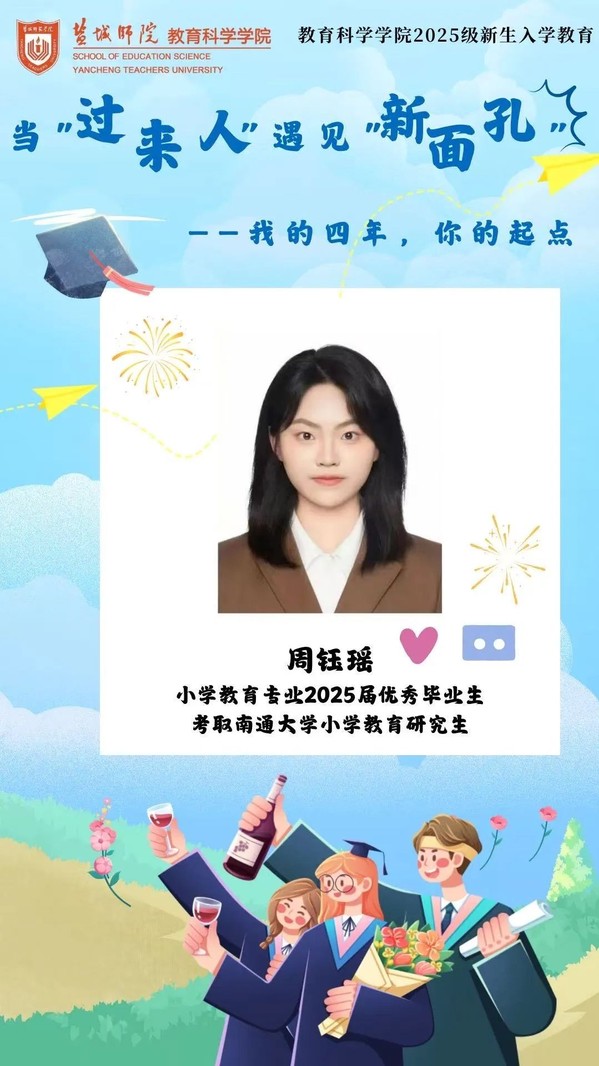 在四年前,周钰瑶与很多新生一样,带着对大学生活的憧憬,走进盐师的大门,内心既兴奋又忐忑。新的学习环境、陌生的同学群体以及未来的不确定,让周钰瑶在最初的日子里常常感到紧张。