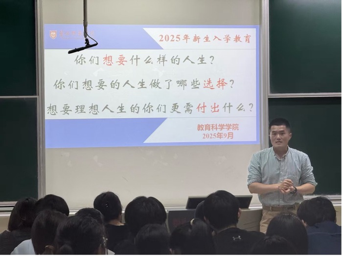 讲座前,学工办陈志鹏老师围绕“你们想要什么样的人生”“你们想要的人生做了哪些选择”“想要理想人生的你们更需付出什么”三个核心问题与同学们展开交流。他勉励大家在新的学习阶段要敢于立志、勇于追梦,更要注重脚踏实地的努力与积累。他强调,大学生活既是新起点,也是新挑战,唯有坚定信念、勤于实践,方能在未来的人生道路上行稳致远。