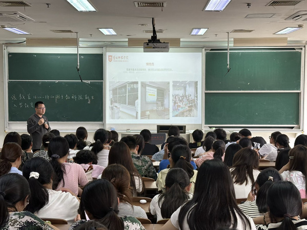 在小学教育专场讲座中,张权力主任围绕专业核心竞争力,从模块化课程体系构建、高水平师资队伍配置、多层次实践平台搭建三个维度,详细解读小学教育专业的优势特色与办学理念。他结合近三年毕业生就业数据与典型职业发展案例,清晰呈现历届毕业生的就业分布、岗位竞争力及长远发展前景,让新生对专业前景形成直观且深刻的认知。针对新生关心的专业学习重点、实践教学安排、核心技能提升路径及未来职业发展等问题,他逐一细致回应,并鼓励新生以“实基础、重应用、强能力”为核心目标,在实战中锤炼教育教学能力,为成长为合格教育工作者做好充分准备。