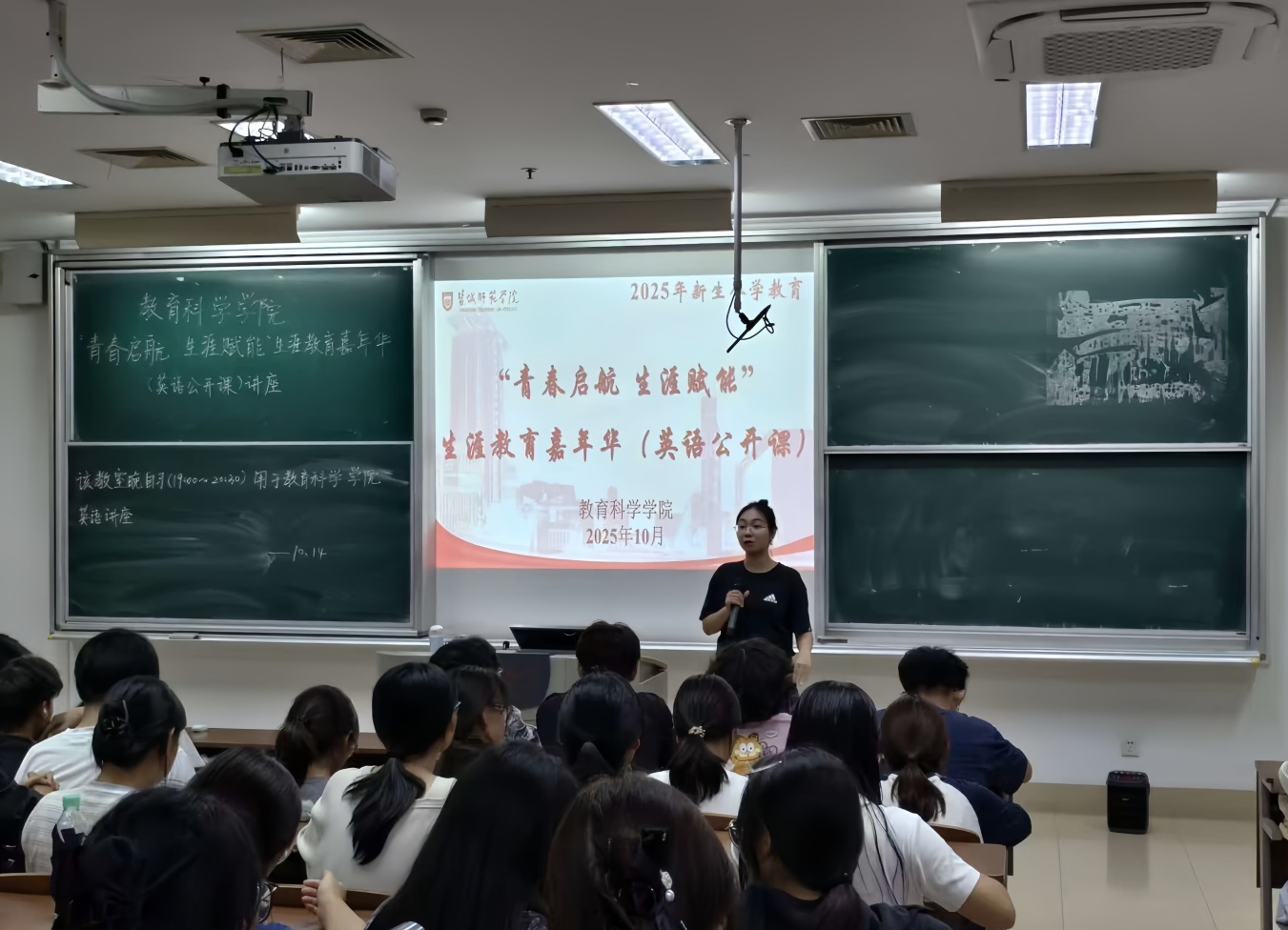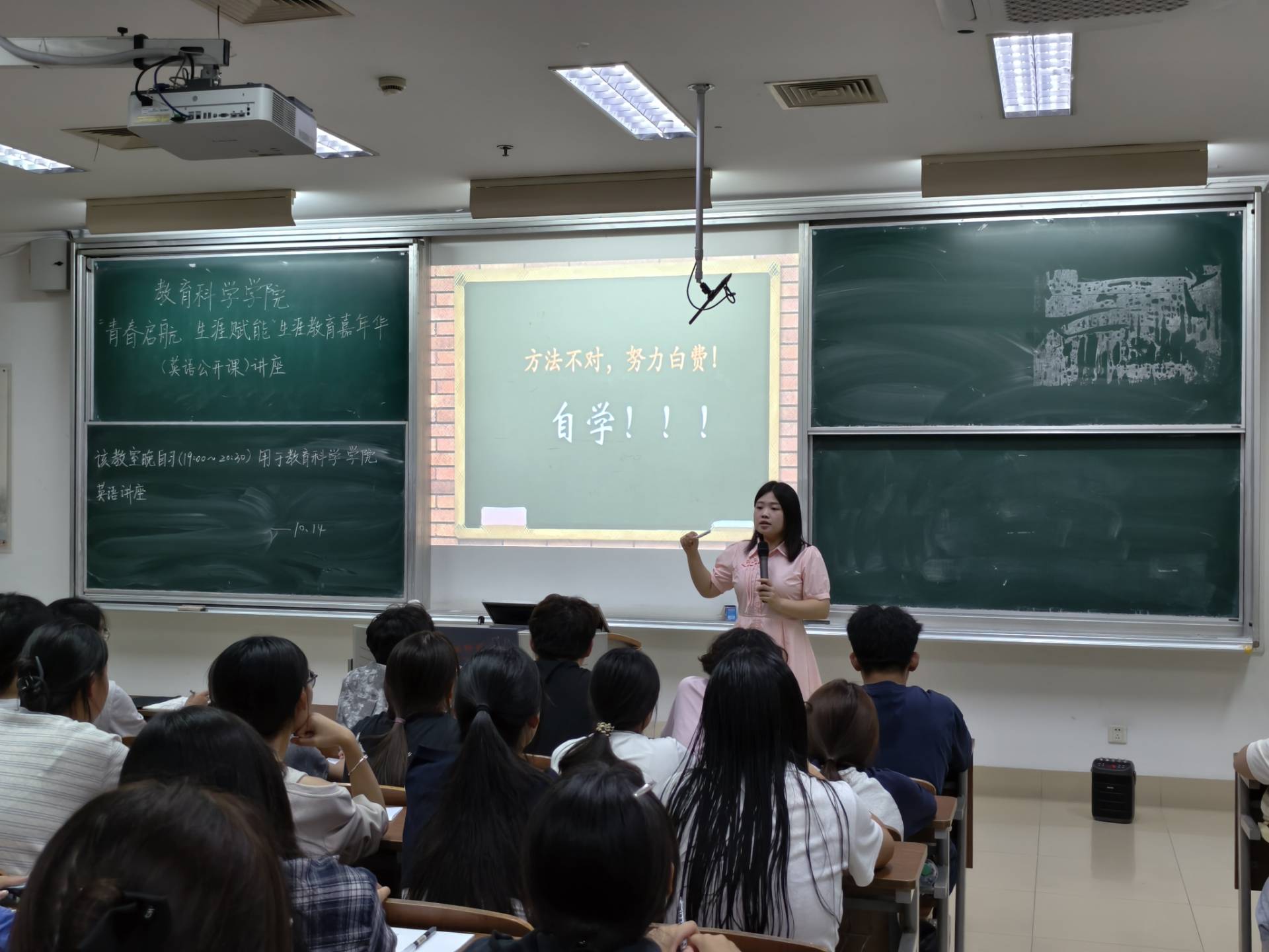 10月15日晚,伟德BETVLCTOR1946在通榆校区主楼,为2025级全体新生举办“青春启航 生涯赋能”生涯教育嘉年华系列活动之英语公开课,助力新生夯实英语基础、破解四六级备考难题。